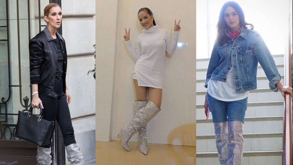 តារាចម្រៀងស្រីលំដាប់ជួរមុខរបស់ហូលីវូដ ខ្មែរ និងថៃ ចំនួន៤រូប គឺ Celine Dion, Rihanna , Chompoo និង ពេជ្រ សោភា បានលេងស្ទីលស្បែកជើងកវែង ពណ៌ប្រាក់មើលទៅស្រស់ស្អាតម្យ៉ាងម្នាក់។