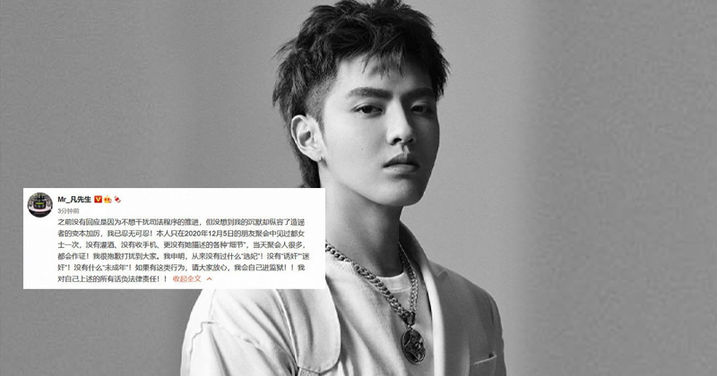 ទាក់ទង​នឹង​ព័ត៌មាន​អាស្រូវបៀតបៀនផ្លូវភេទដែល​ចោទប្រកាន់​ Kris Wu ថា​ល្បួង​ក្មេងស្រីជាច្រើន​នាក់ មក​ប្រព្រឹត្តិអំពើអសីលធម៌នោះ បាន​បង្ក​ជា​ការ​ភ្ញាក់​ផ្អើល​មិនធម្មតាពេញ​ពិភពសិល្បៈចិនតាំង​ពី​ចុងសប្ដាហ៍មុន ប៉ុន្តែ​នៅពេល​នេះ Kris Wu ដែល​ជា​សាមី​ខ្លួន​បាន​ចេញមុខច្រាន​ចោល​ព័ត៌មាន​ទាំង​នេះ​ហើយ។